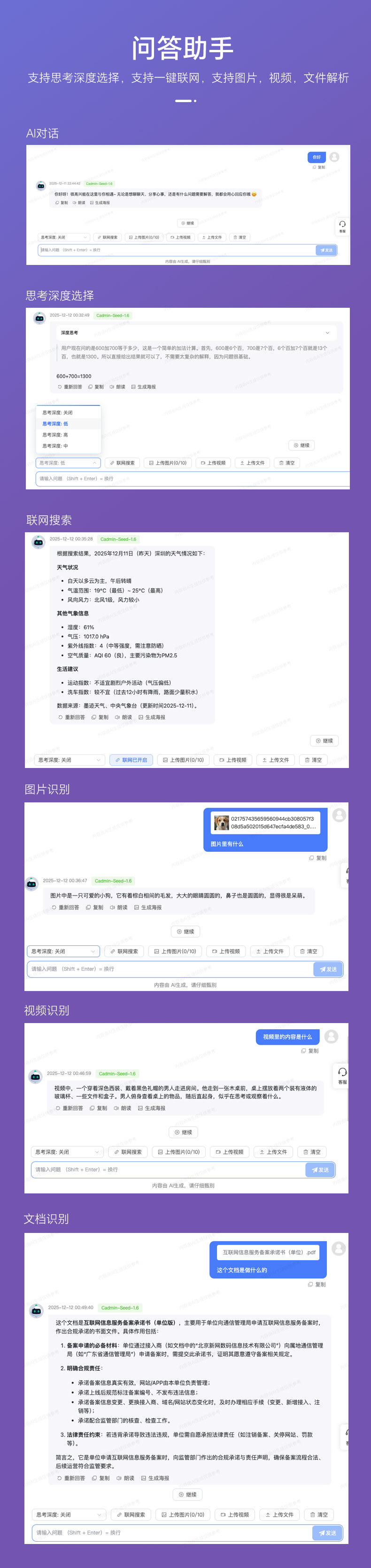 cadmin全能AI系统——企业智能化升级的一站式解决方案!该系统深度融合AI对话、智能创作、文生图/图生图绘画、知识库训练、智能体应用等十大核心功能,覆盖文本、图像、音乐、视频全领域创作需求。支持快速生成PPT、思维导图等办公场景工具,结合私有化知识库训练,精准适配企业业务流程。无论是客服咨询、创意设计、数据分析还是跨平台协作,Cadmin均能实现高效响应与自动化处理,通过自主学习持续优化服务策略,助力企业降本增效,提升用户体验与市场竞争力,是政务、教育、电商等多行业的智能化转型首选。